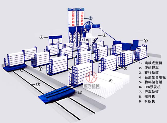 恒(heng)興立式輕質牆闆(pan)生産線布局圖